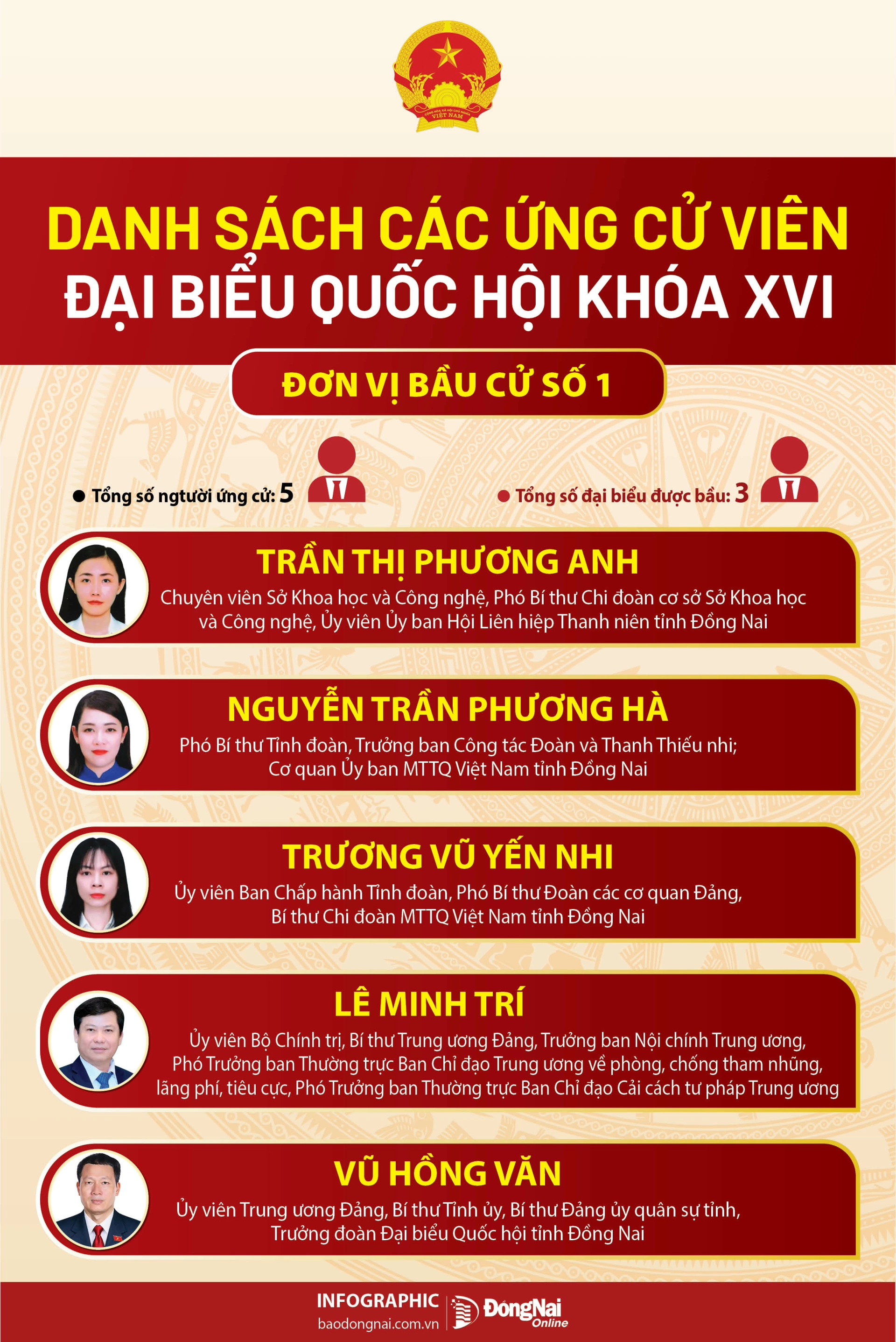 Báo và Phát thanh, Truyền hình Đồng Nai trân trọng giới thiệu danh sách các ứng cử viên đại biểu Quốc hội khóa XVI - Đơn vị bầu cử số 1 (xếp theo A, B, C).