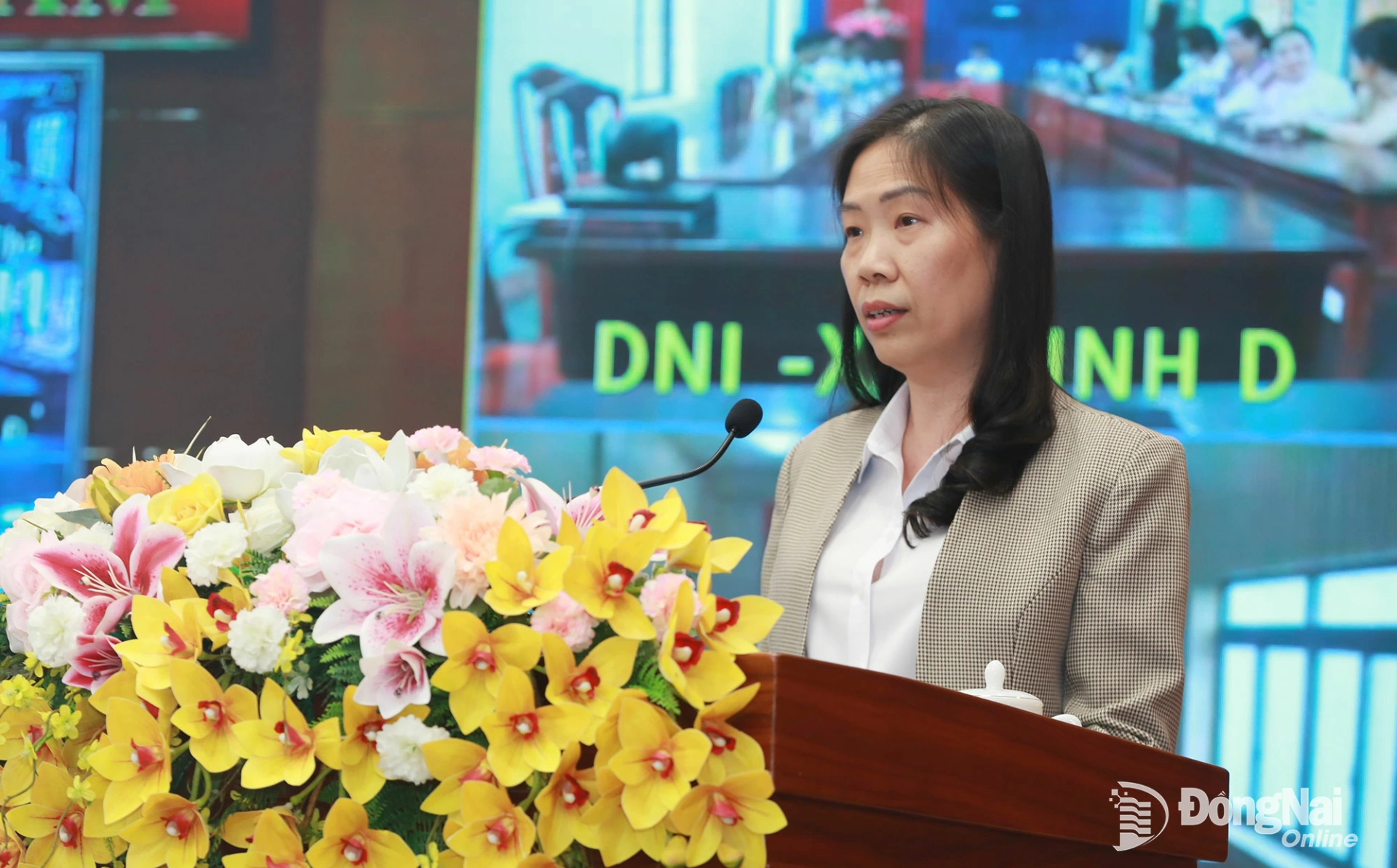 Tỉnh ủy viên, Phó Trưởng ban Thường trực Ban Tổ chức Tỉnh ủy Bùi Thị Yến triển khai các văn bản của Tỉnh ủy về công tác bầu cử đại biểu Quốc hội khóa XVI và bầu cử đại biểu HĐND các cấp nhiệm kỳ 2026-2031. Ảnh: Huy Anh