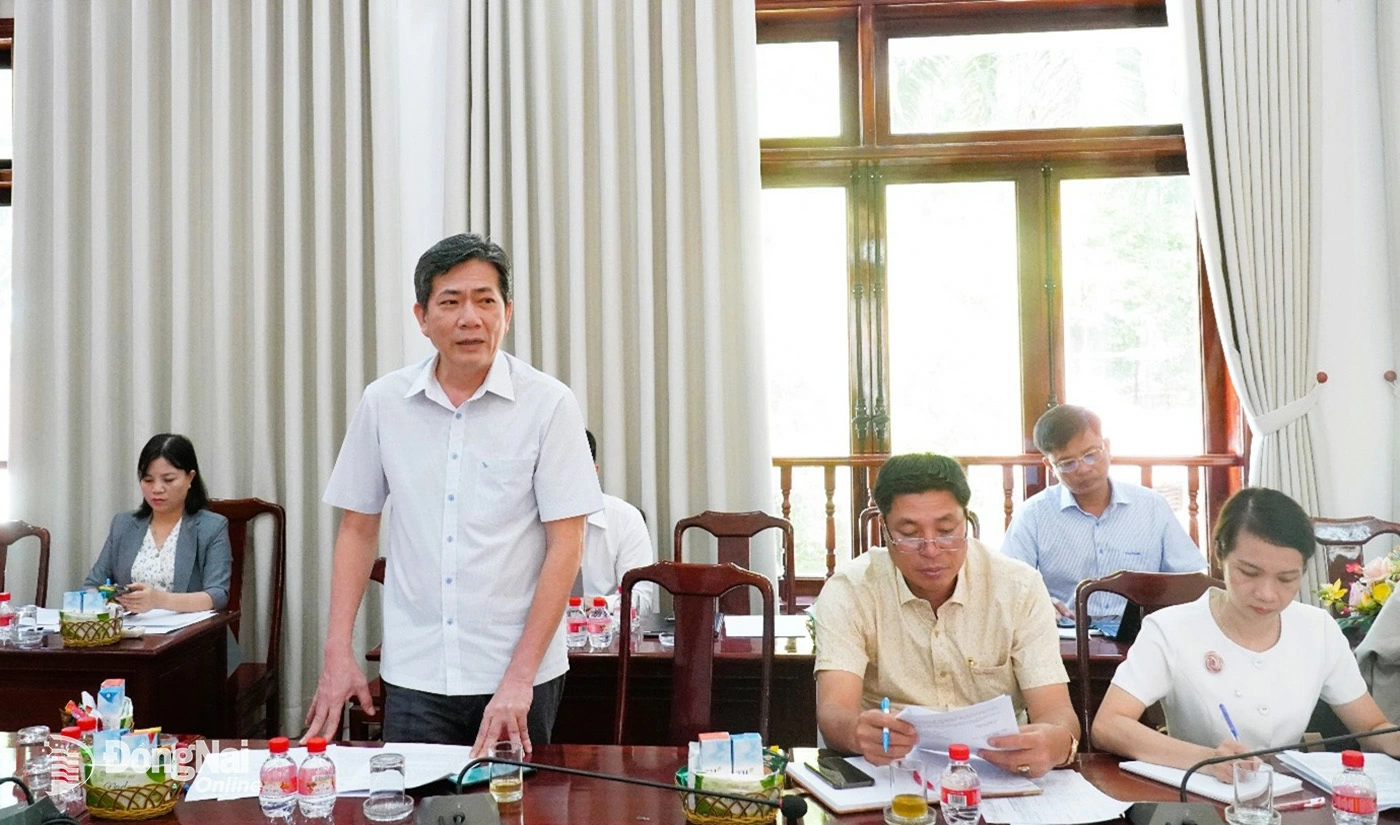 Ủy viên Ban Thường vụ Tỉnh ủy, Phó Chủ tịch Thường trực Ủy ban MTTQ Việt Nam tỉnh Đồng Nai Hà Anh Dũng, Trưởng ban Bầu cử đơn vị bầu cử số 5 chủ trì hội nghị. Ảnh: Văn Tâm