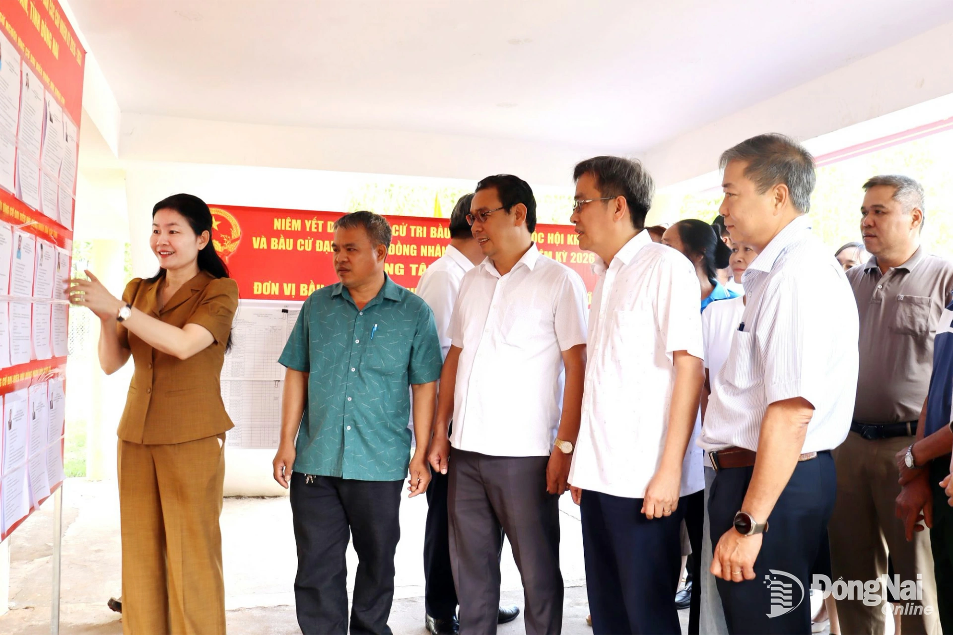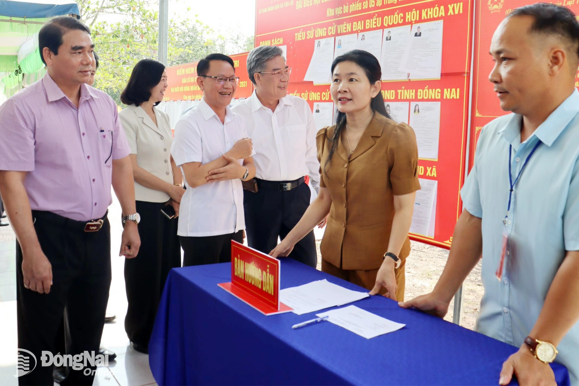 Đoàn công tác kiểm tra một điểm bầu cử tại xã Tân Lợi. Ảnh: Nguyệt Hà