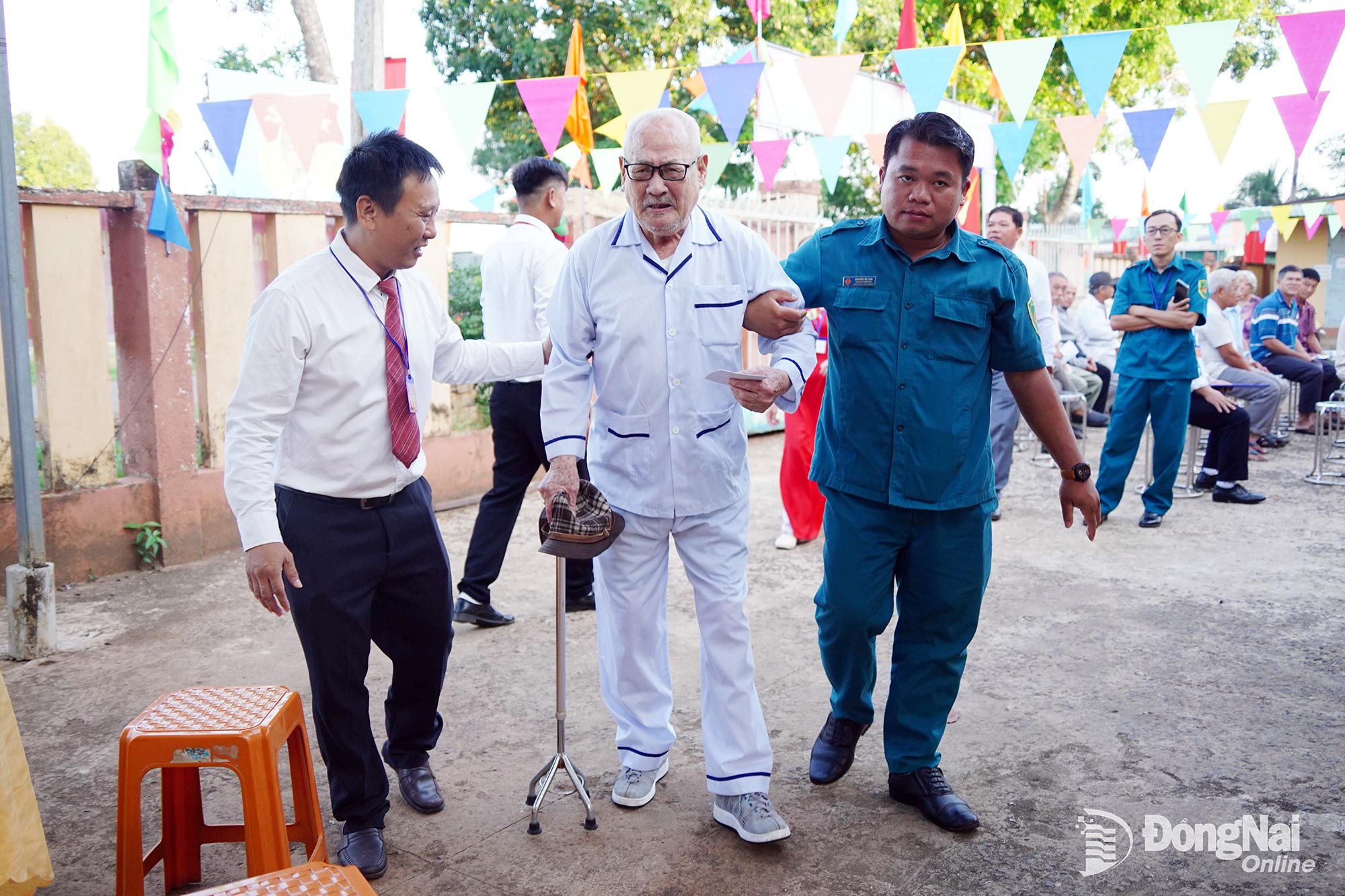 Lãnh đạo xã Xuân Đường hỗ trợ cử tri lớn tuổi vào khu vực bỏ phiếu để thực hiện quyền và nghĩa vụ công dân trong ngày bầu cử. Ảnh: Lê Duy