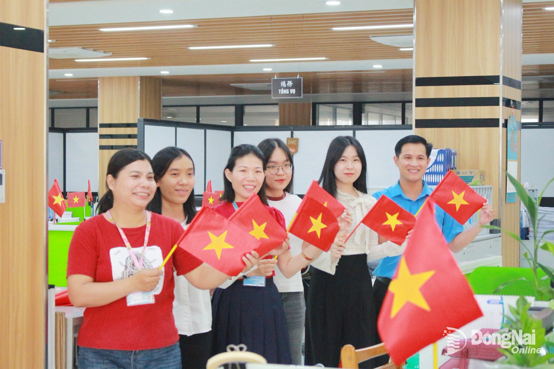 Đoàn viên, người lao động Công ty TNHH Pou Phong Việt Nam (xã An Viễn, tỉnh Đồng Nai) quyết tâm thi đua làm việc, hướng đến ngày hội non sông. Ảnh: Nguyễn Hòa