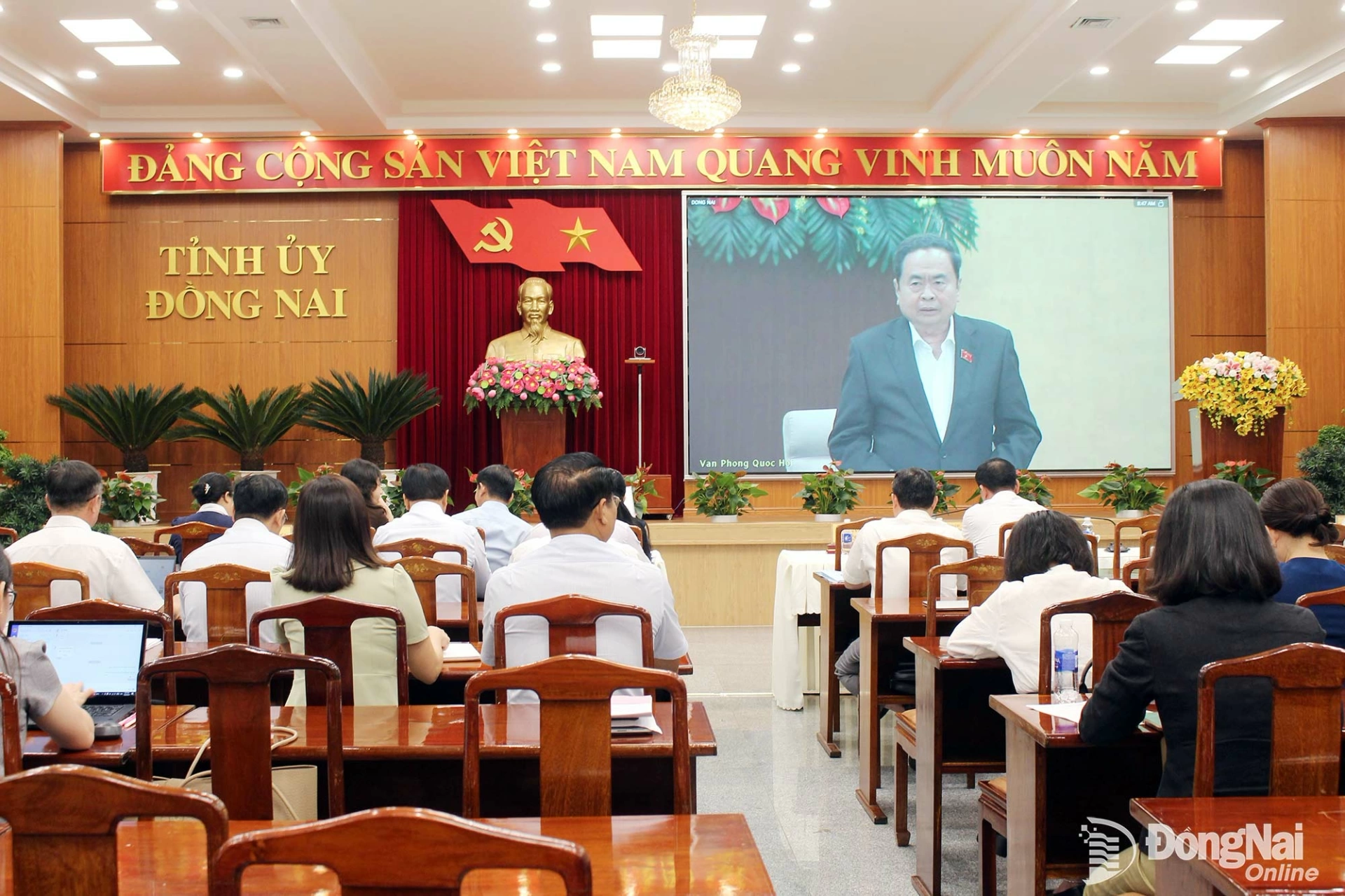 Tại điểm cầu Tỉnh ủy Đồng Nai, tham dự có các đồng chí: Tôn Ngọc Hạnh, Ủy viên Trung ương Đảng, Phó Bí thư Thường trực Tỉnh ủy, Chủ tịch HĐND tỉnh; Nguyễn Văn Út, Phó Bí thư Tỉnh ủy, Chủ tịch UBND tỉnh; Võ Tấn Đức, Phó Bí thư Tỉnh ủy; Huỳnh Thị Hằng, Phó Bí thư Tỉnh ủy, Chủ tịch Ủy ban MTTQ Việt Nam tỉnh; Thái Bảo, Phó Bí thư Tỉnh ủy, Trưởng ban Tổ chức Tỉnh ủy; cùng các đồng chí Ủy viên Ban Thường vụ Tỉnh ủy, Ủy viên Ban Chấp hành Đảng bộ tỉnh và lãnh đạo các sở, ngành, đơn vị.