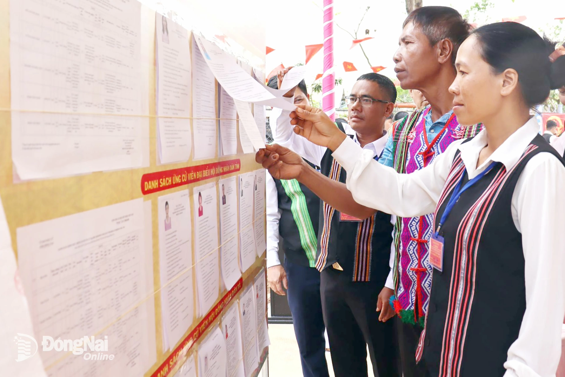 Đông đảo đồng bào dân tộc thiểu số xã Bom Bo tìm hiểu tiểu sử, quá trình công tác của ứng cử viên trước ngày bầu cử. Ảnh: Nguyệt Hà
