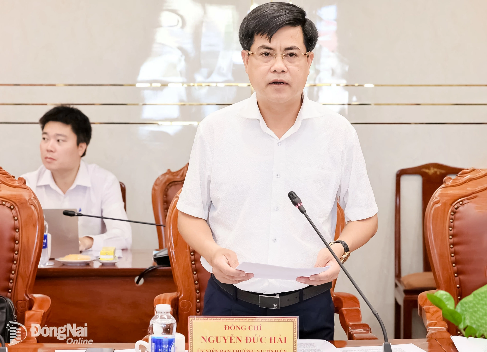 Thiếu tướng Nguyễn Đức Hải, Ủy viên Ban Thường vụ Tỉnh ủy, Giám đốc Công an tỉnh báo cáo tại buổi làm việc. Ảnh: Công Nghĩa