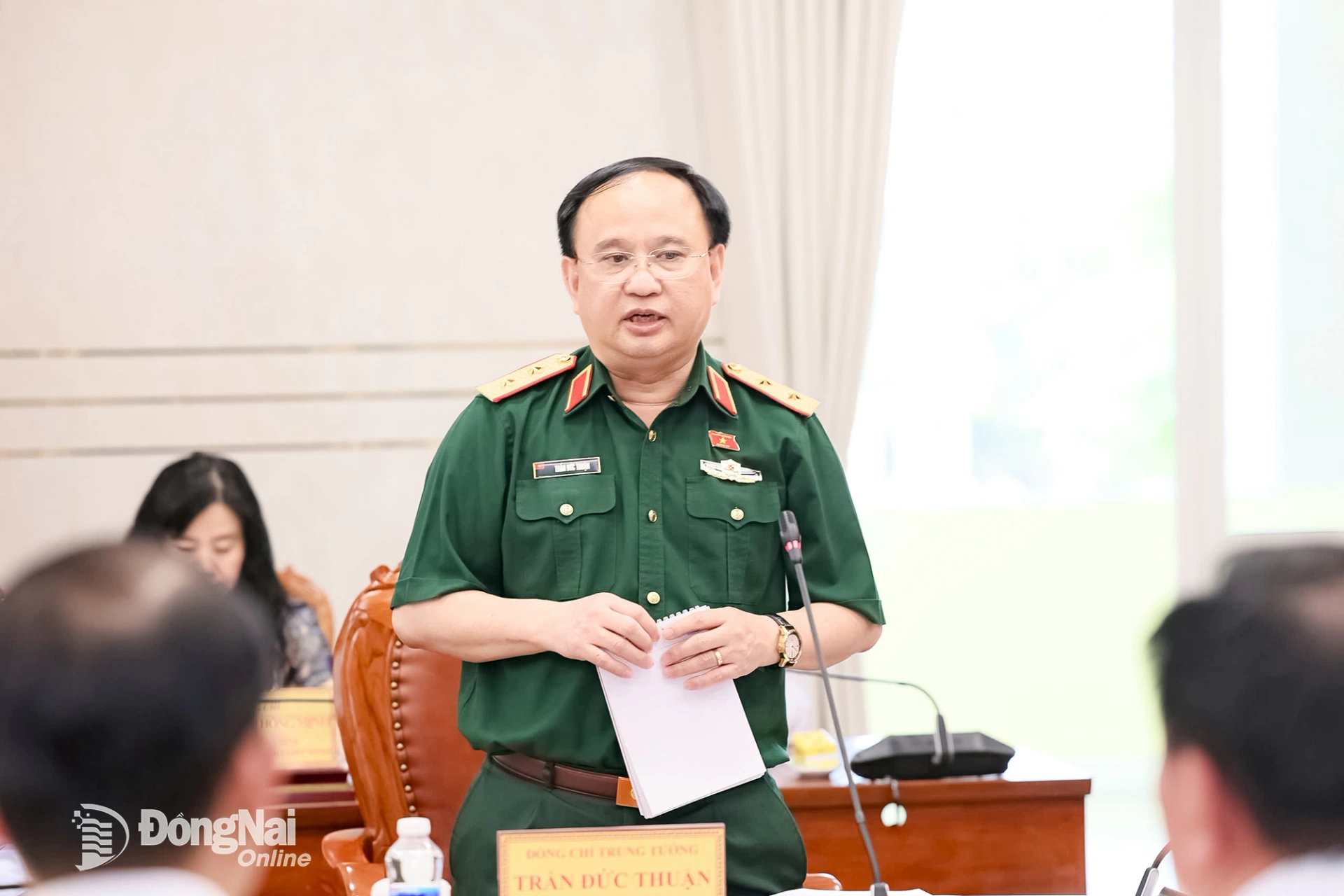 Trung tướng Trần Đức Thuận, Phó Chủ nhiệm Ủy ban Quốc phòng, An ninh và Đối ngoại phát biểu tại buổi làm việc. Ảnh: Công Nghĩa
