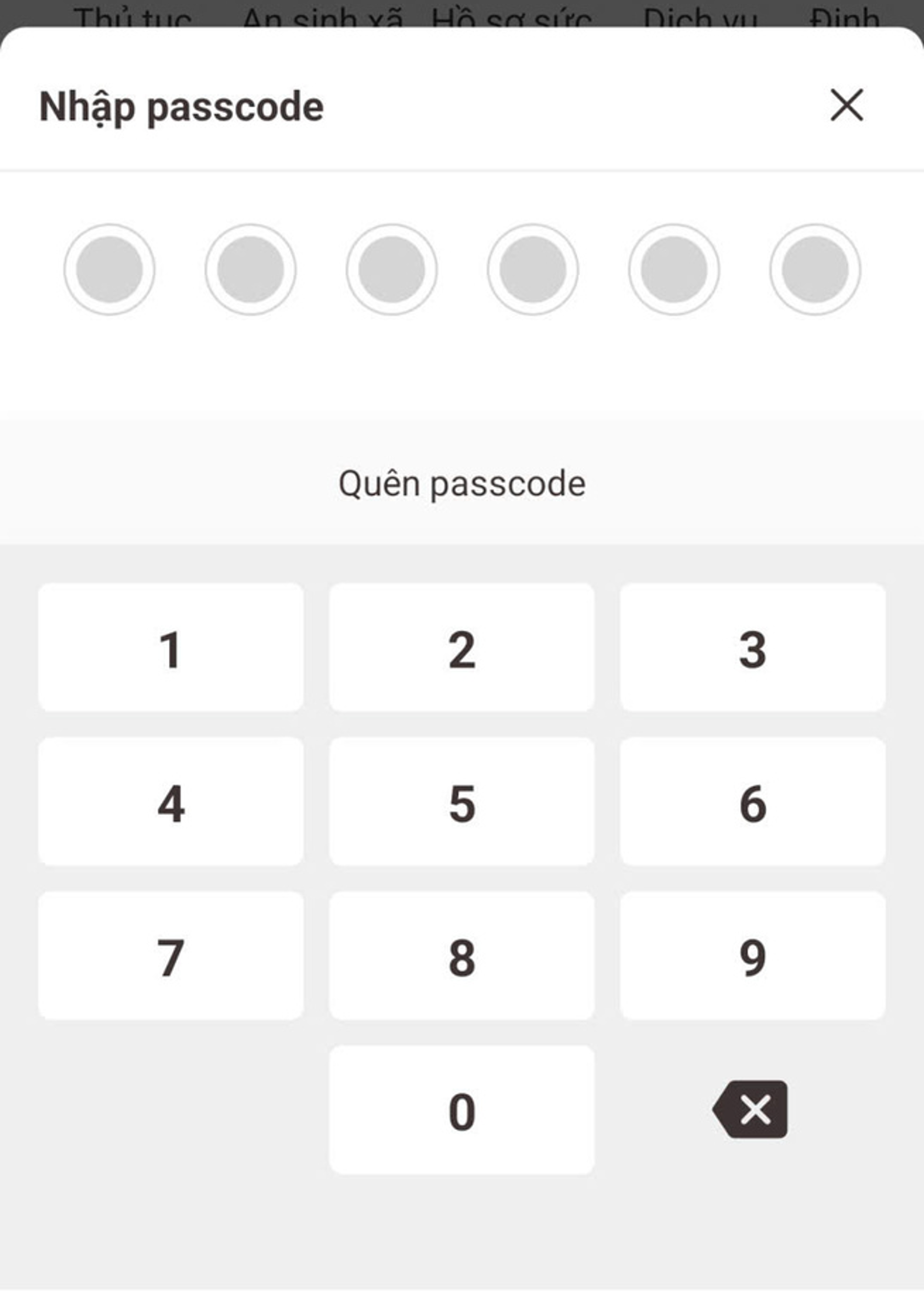 - Bước 4: Xác thực bằng mã Passcode (06 chữ số) để bảo mật thông tin.