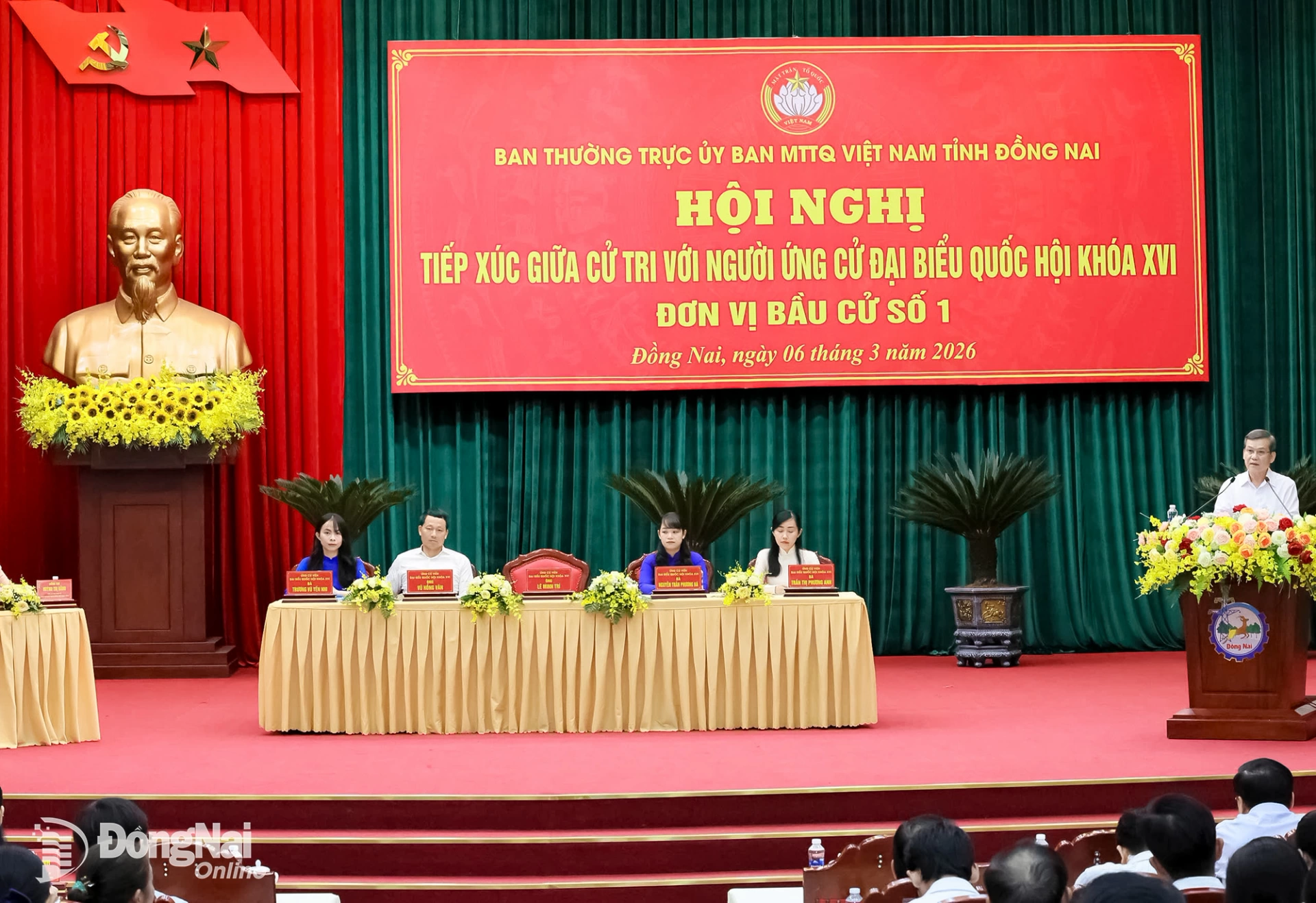 Tiếp xúc cử tri với người ứng cử ĐBQH khóa XVI thuộc ĐVBC số 1 có các ứng cử viên: Lê Minh Trí, Ủy viên Bộ Chính trị, Bí thư Trung ương Đảng, Trưởng ban Nội chính Trung ương, Phó Trưởng ban Thường trực Ban Chỉ đạo Trung ương về phòng, chống tham nhũng, lãng phí, tiêu cực, Phó ban Chỉ đạo cải cách tư pháp Trung ương; Vũ Hồng Văn, Ủy viên Trung ương Đảng, Bí thư Tỉnh ủy, Trưởng đoàn ĐBQH tỉnh Đồng Nai; Trần Thị Phương Anh, chuyên viên, Phó Bí thư Chi đoàn cơ sở Sở Khoa học và Công nghệ, Ủy viên Ủy ban Hội Liên hiệp thanh niên tỉnh Đồng Nai; Nguyễn Trần Phương Hà, Phó Bí thư Tỉnh đoàn, Trưởng ban Công tác Đoàn và Thanh thiếu nhi cơ quan Ủy ban MTTQ Việt Nam tỉnh Đồng Nai; Trương Vũ Yến Nhi, Ủy viên Ban Chấp hành Tỉnh đoàn, Phó Bí thư Đoàn các cơ quan Đảng tỉnh, Bí thư Chi đoàn Ủy ban MTTQ Việt Nam tỉnh Đồng Nai.