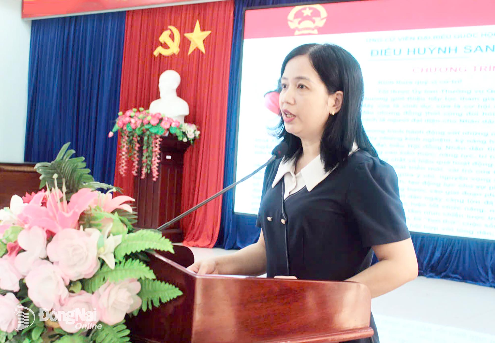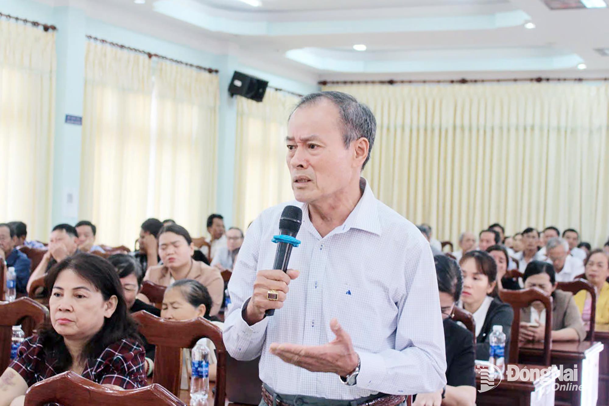 Ứng cử viên đại biểu Quốc hội khóa XVI Đơn vị bầu cử số 6 và ứng cử viên đại biểu HĐND tỉnh Đồng Nai nhiệm kỳ 2026-2031 Đơn vị bầu cử số 22 tiếp xúc cử tri tại hội nghị. Ảnh: Mỹ Hiệp