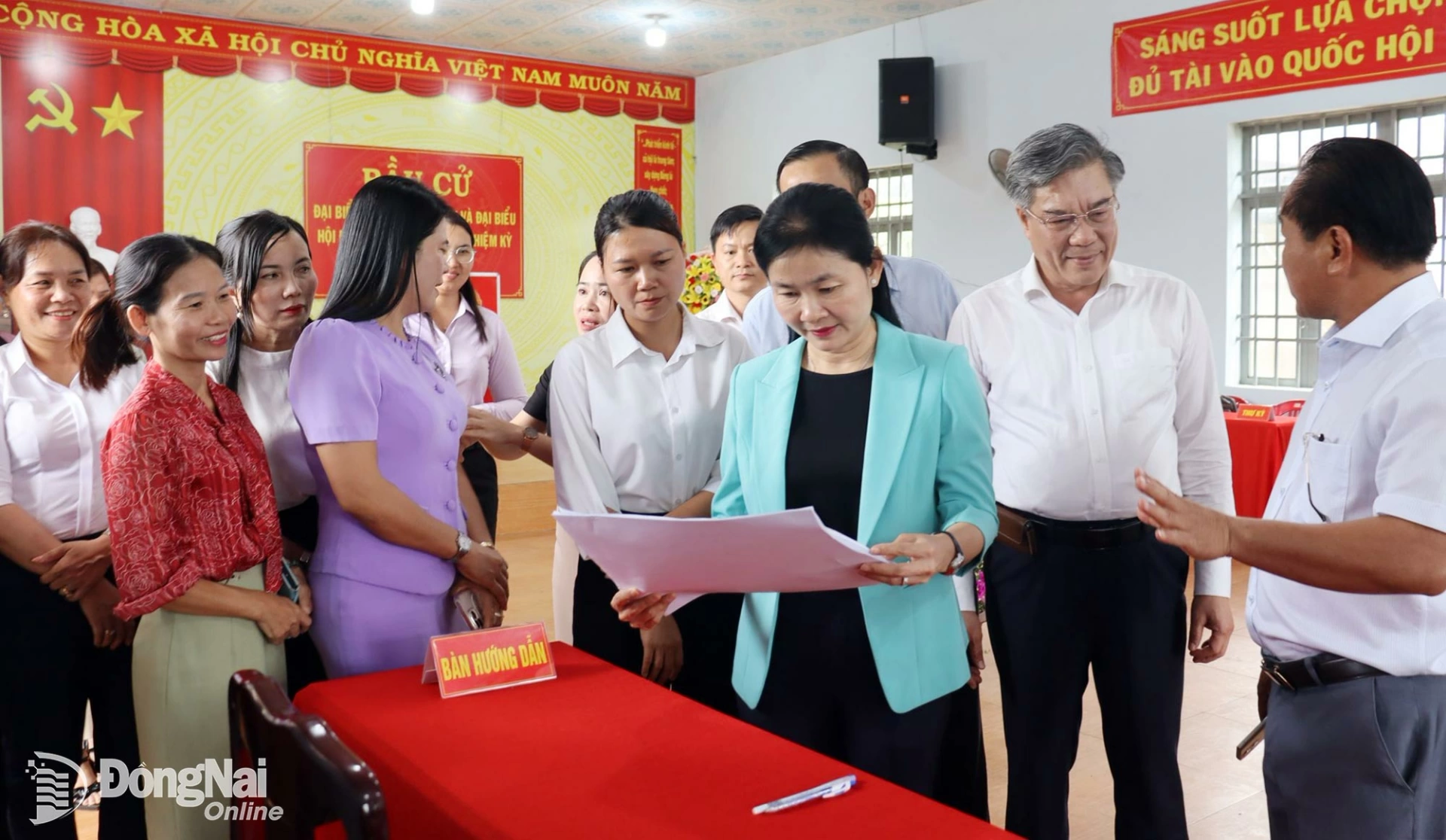 Kiểm tra thực tế tại các khu vực niêm yết danh sách cử tri, danh sách ứng cử viên đại biểu Quốc hội khóa XVI và đại biểu HĐND các cấp nhiệm kỳ 2026-2031; khu vực bàn đối chiếu thông tin; bàn đổi phiếu bầu hư, rách; khu vực ghi phiếu, hòm phiếu chính, phụ; cách thức trang trí cờ, hoa, ảnh Bác Hồ…