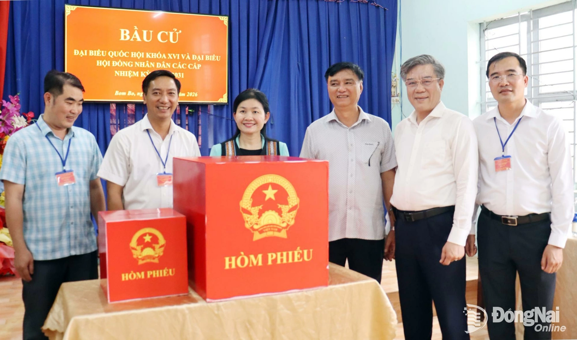 Đoàn kiểm tra hòm phiếu tại một điểm bầu cử xã Bom Bo. Ảnh: Nguyệt Hà