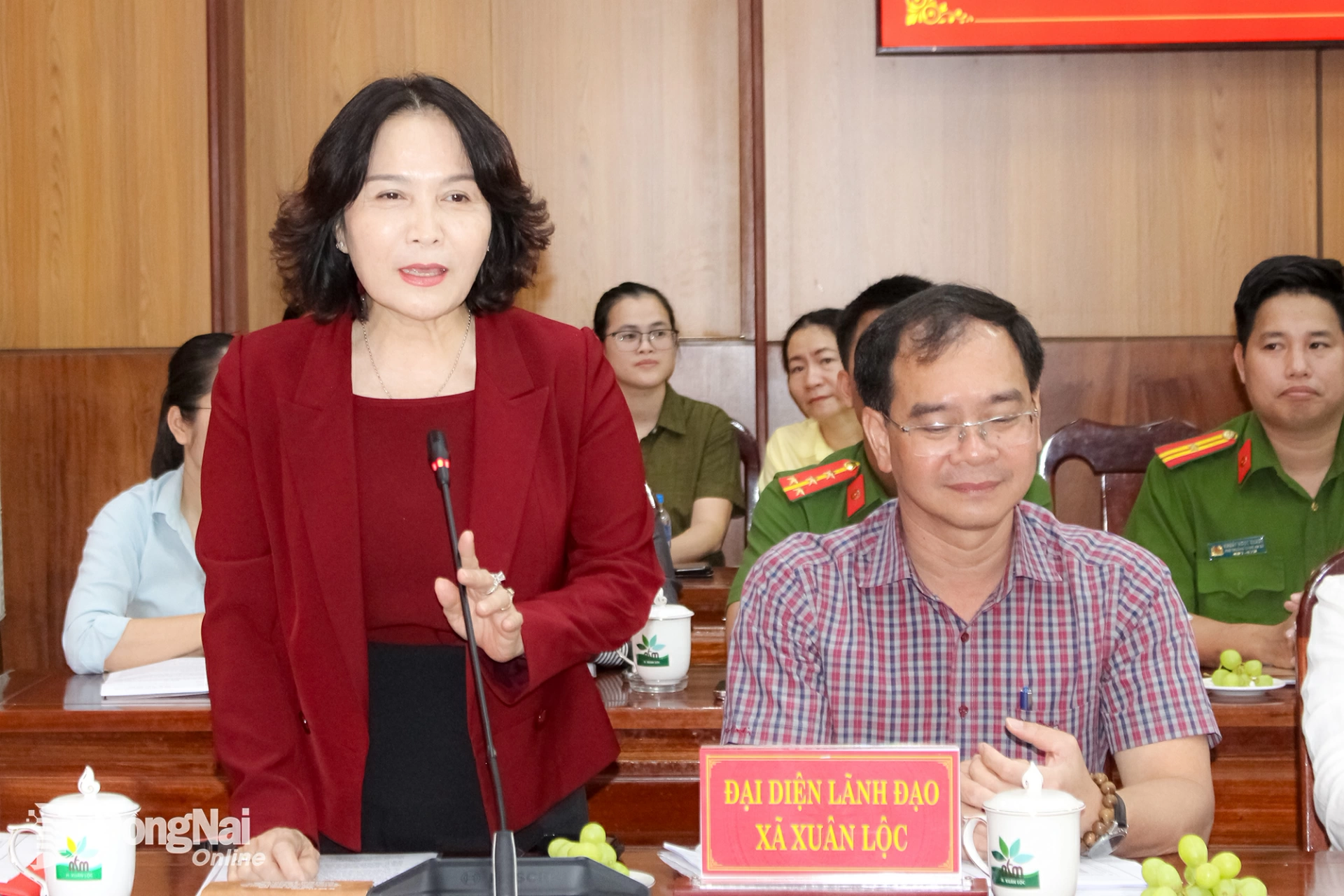 Bí thư Đảng ủy, Chủ tịch HĐND xã Xuân Lộc Nguyễn Thị Cát Tiên phát biểu tại buổi làm việc. Ảnh: Hồ Thảo