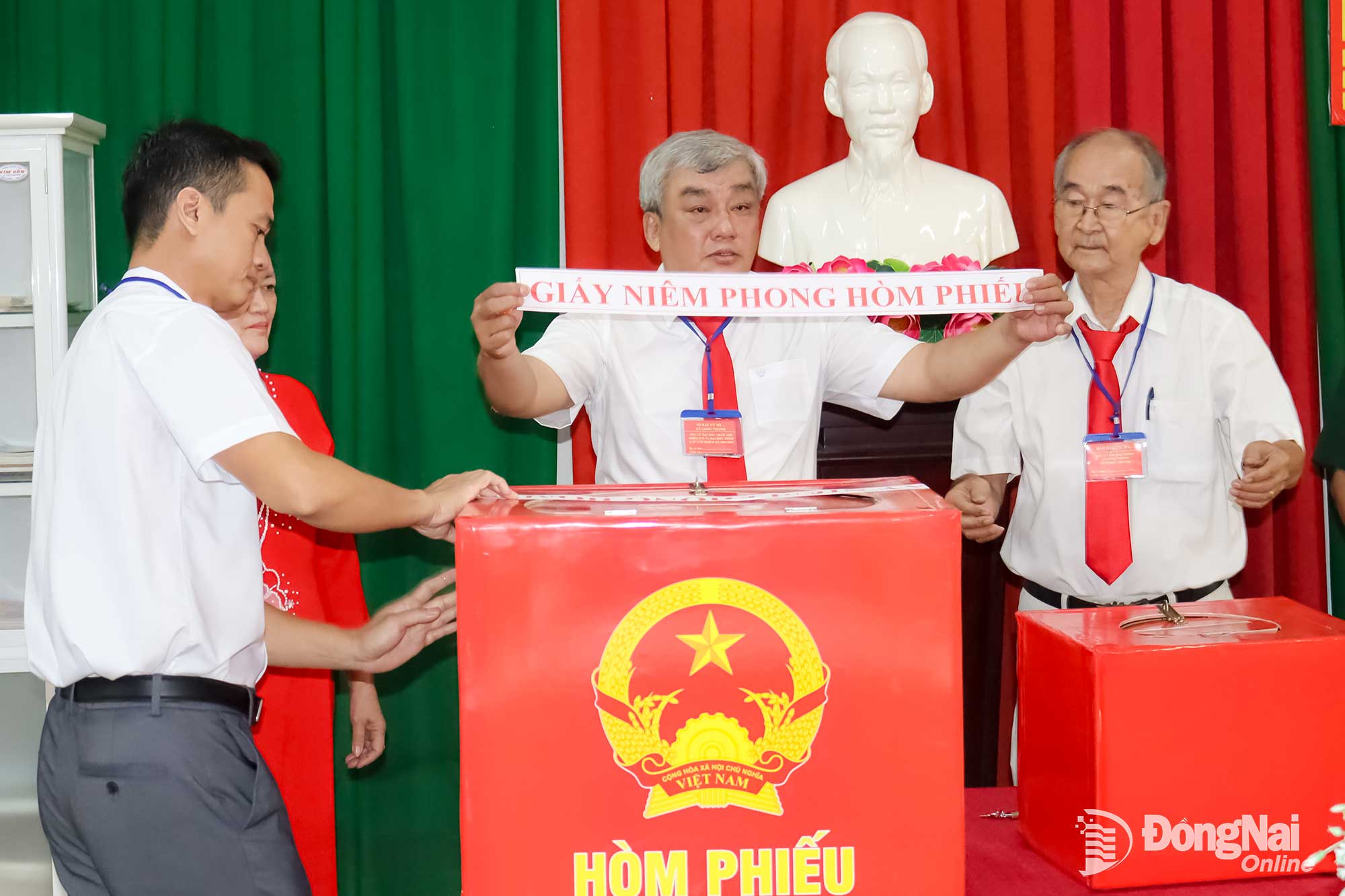 Kiểm tra và niêm phong hòm phiếu. Ảnh: Hoàng Lộc