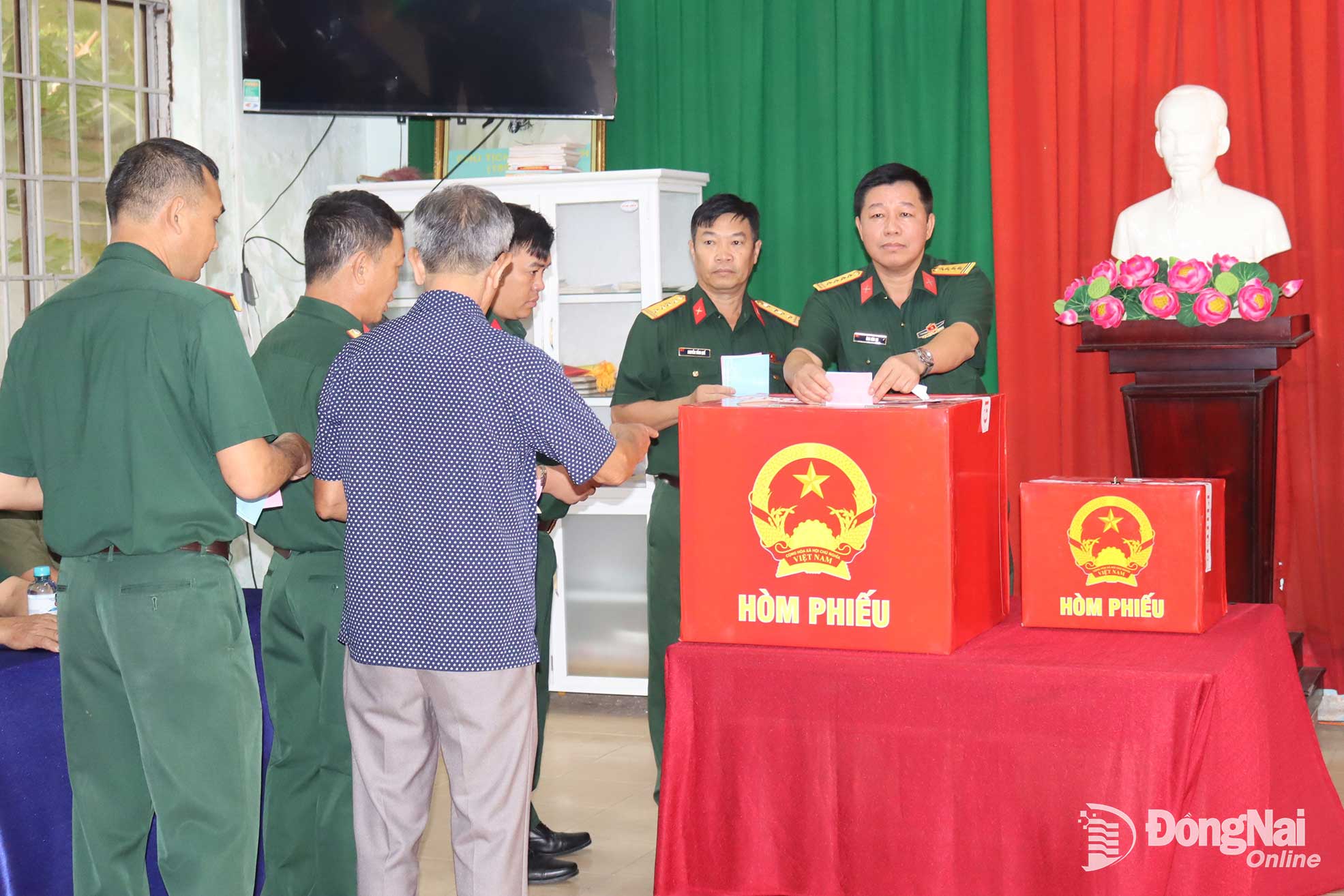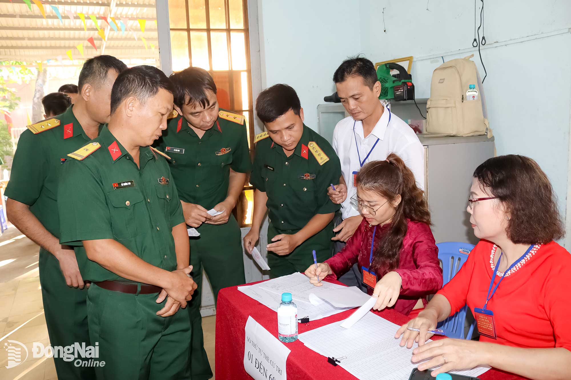 Cử tri quân nhân làm thủ tục bầu cử. Ảnh: Hoàng Lộc