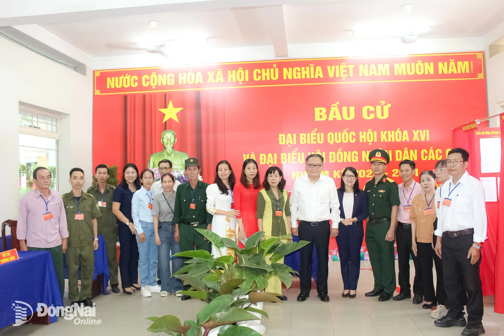 Toàn cảnh lễ khai mạc bầu cử tại khu vực bỏ phiếu số 2, phường Long Hưng. Ảnh: Nguyễn Hòa