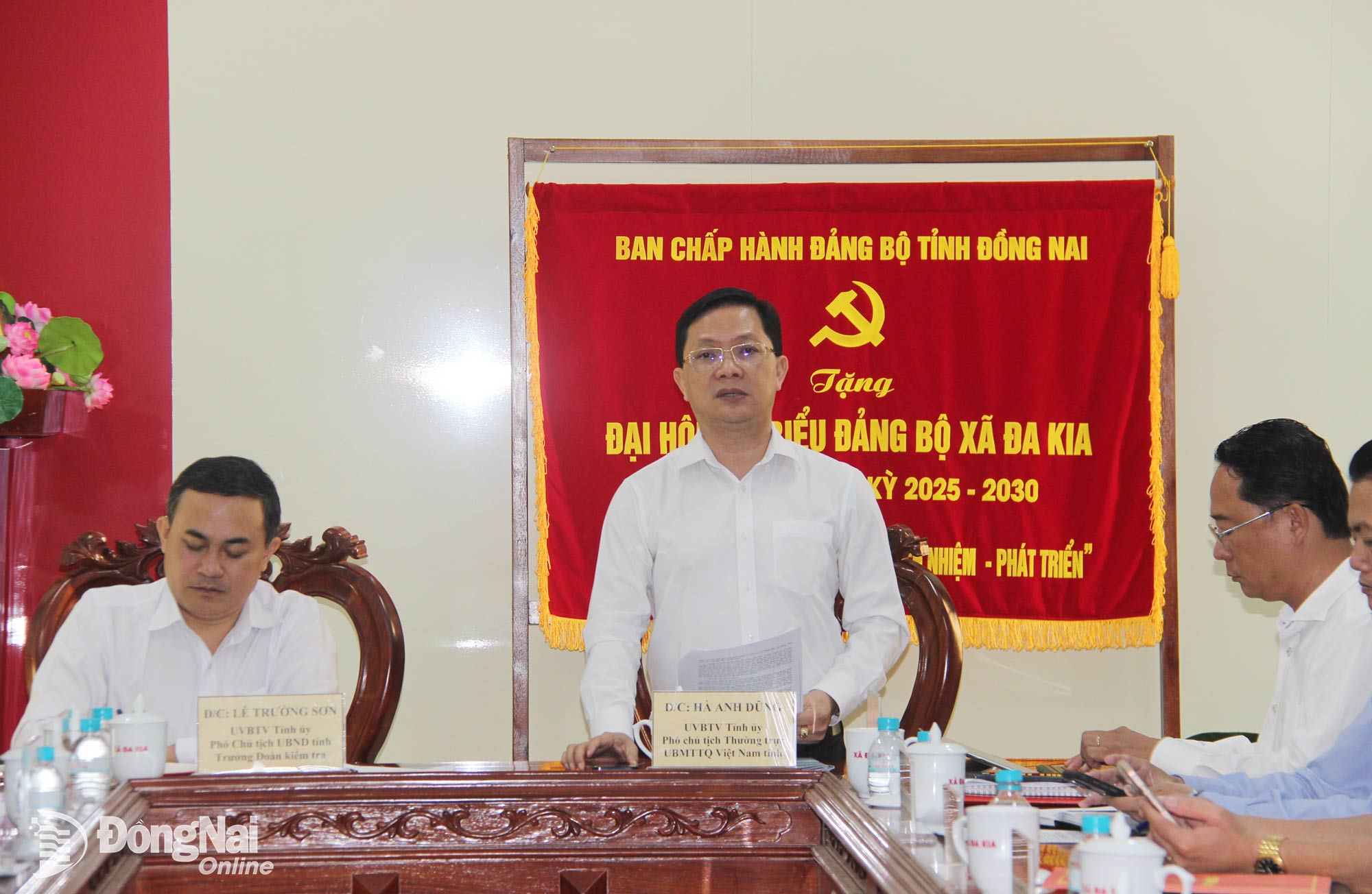 Ủy viên Ban Thường vụ Tỉnh ủy, Phó Chủ tịch Thường trực Ủy ban MTTQ Việt Nam tỉnh Hà Anh Dũng phát biểu tại buổi làm việc với các xã. Ảnh: Trần Danh