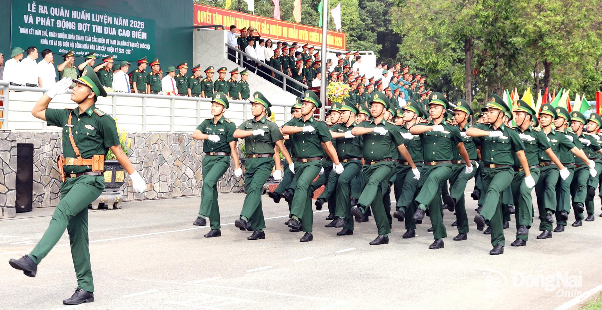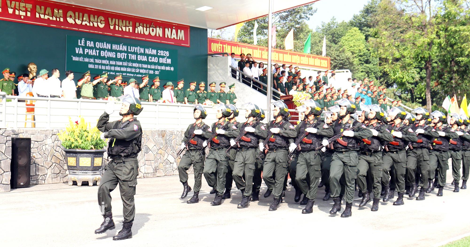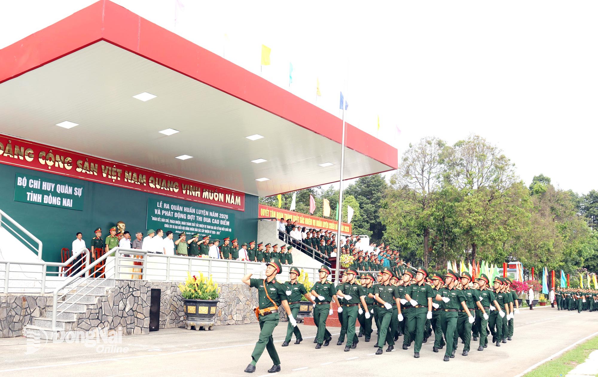 Thủ trưởng Quân khu 7, tỉnh Đồng Nai và Bộ Chỉ huy Quân sự tỉnh dự lễ ra quân huấn luyện. Ảnh: Nguyệt Hà