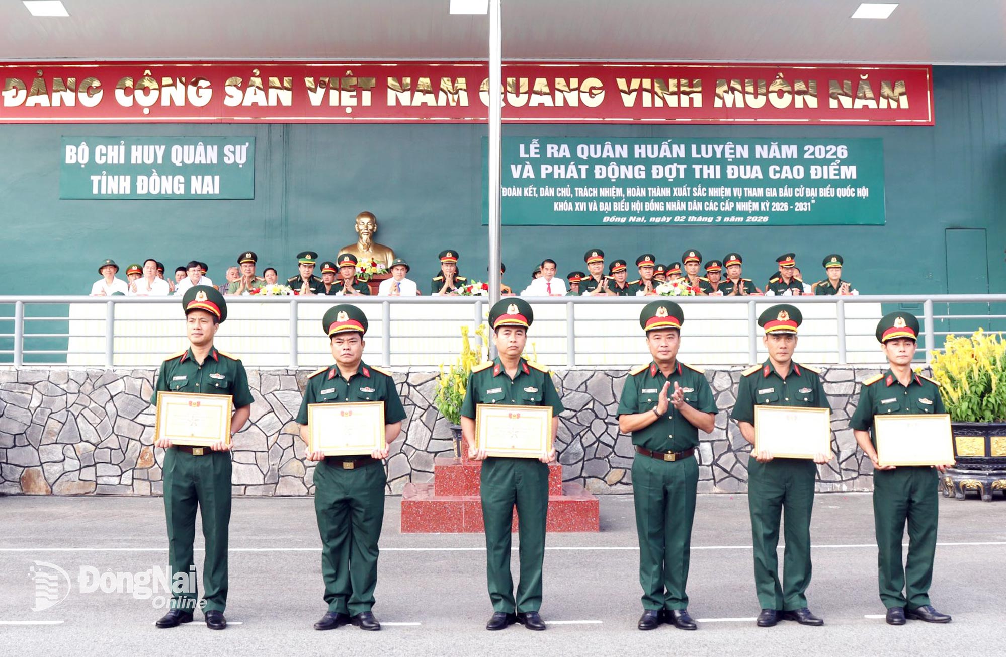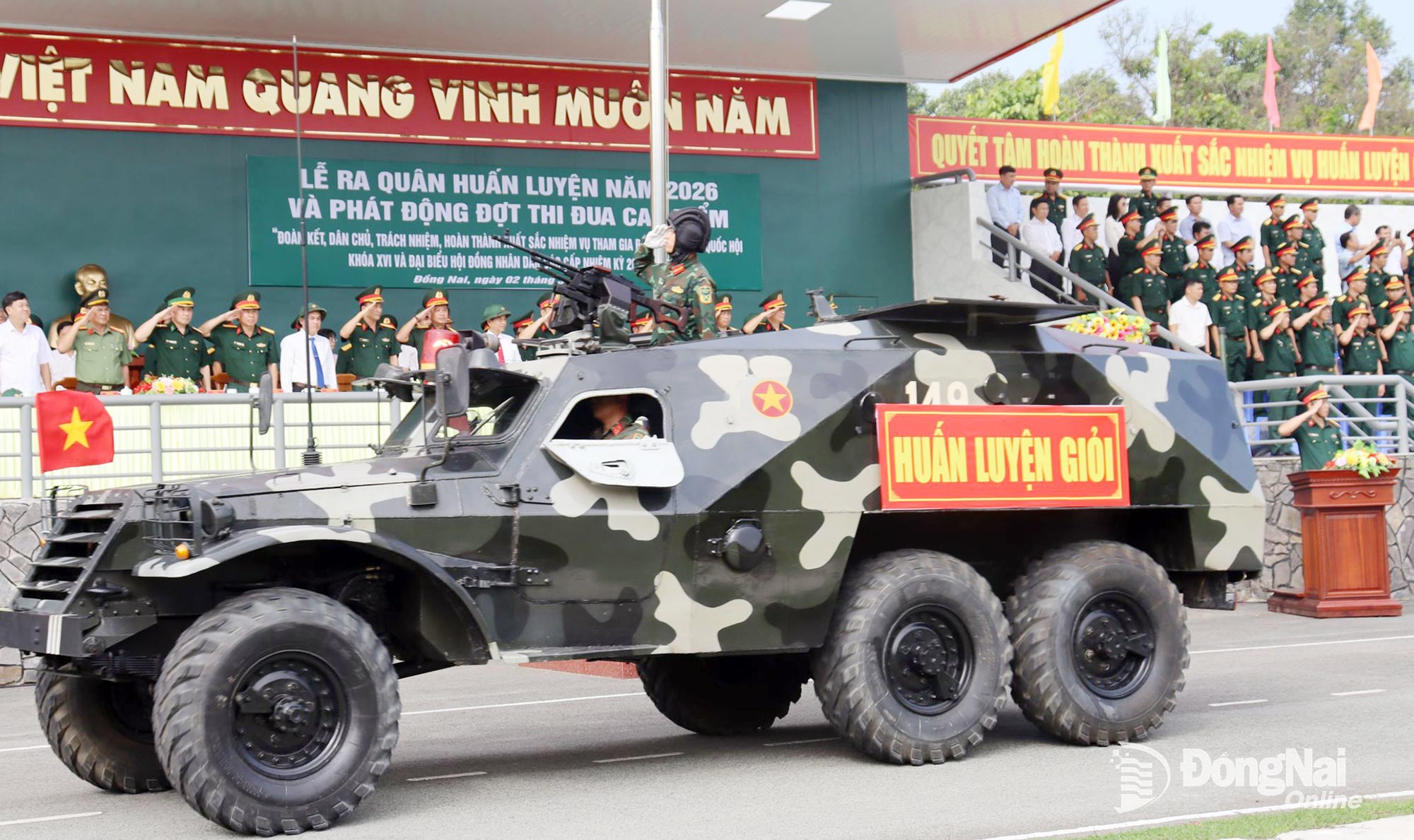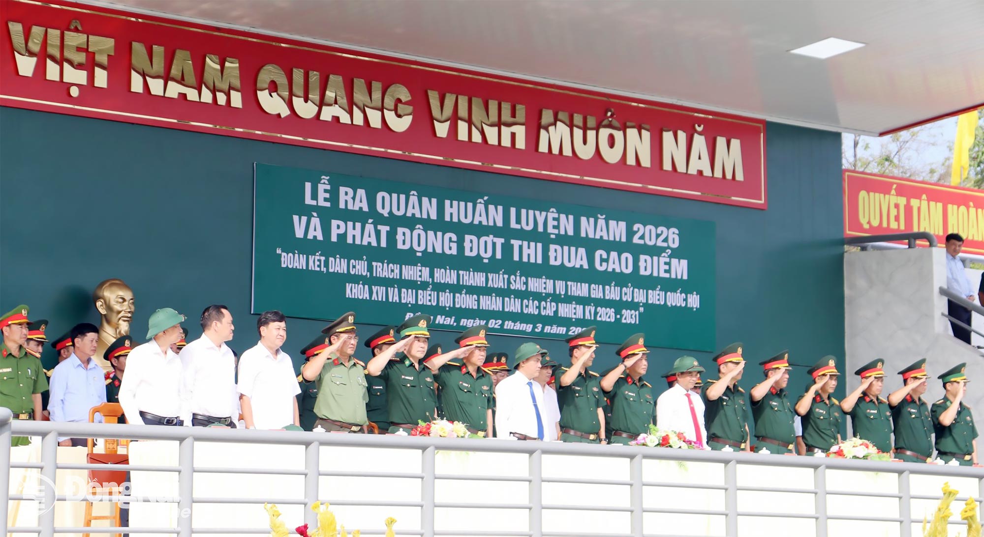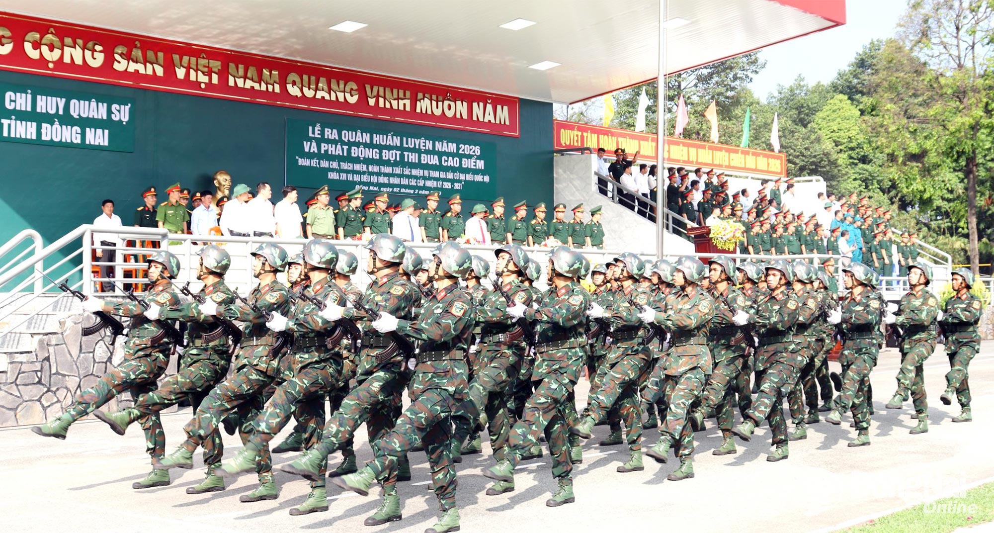 Thủ trưởng Quân khu 7, tỉnh Đồng Nai và Bộ Chỉ huy Quân sự tỉnh dự lễ ra quân huấn luyện. Ảnh: Nguyệt Hà