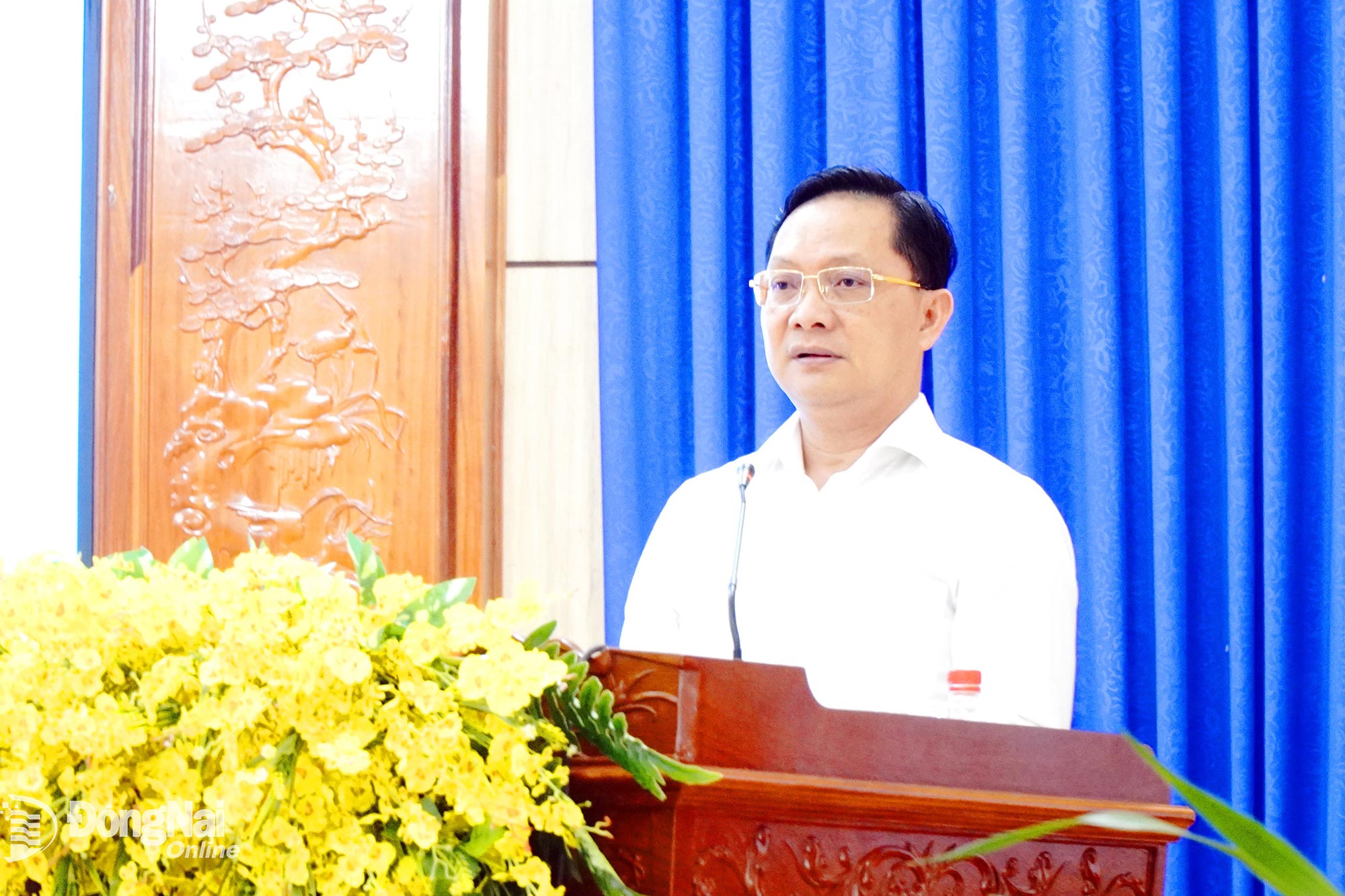 Ông Hà Anh Dũng, Ủy viên Ban Thường vụ Tỉnh ủy, Phó Chủ tịch Thường trực Ủy ban MTTQ Việt Nam tỉnh Đồng Nai trình bày chương trình hành động tại hội nghị. Ảnh: Vũ Nguyện