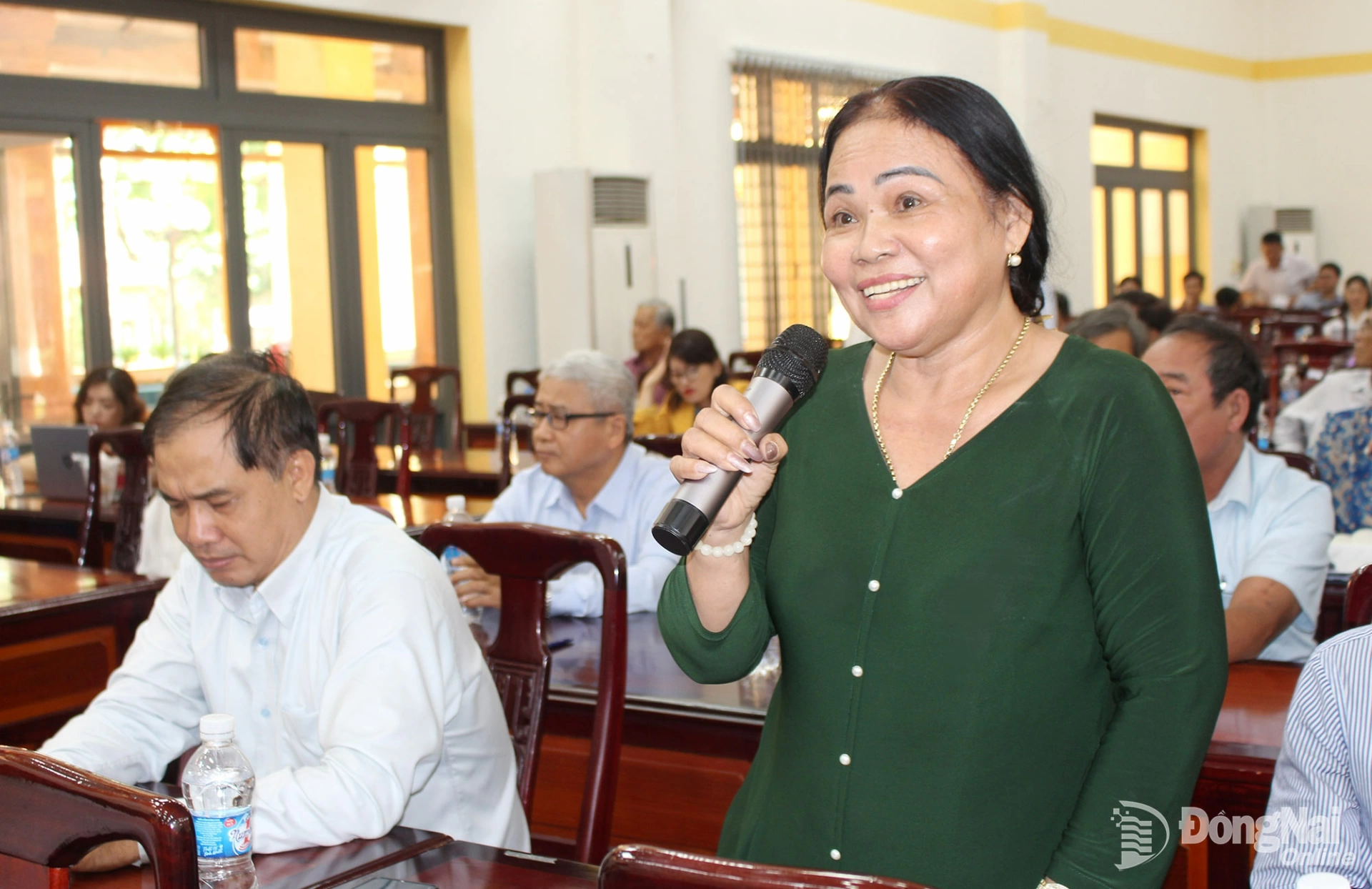 Cử tri phát biểu ý kiến tại hội nghị. Ảnh: Hồ Thảo