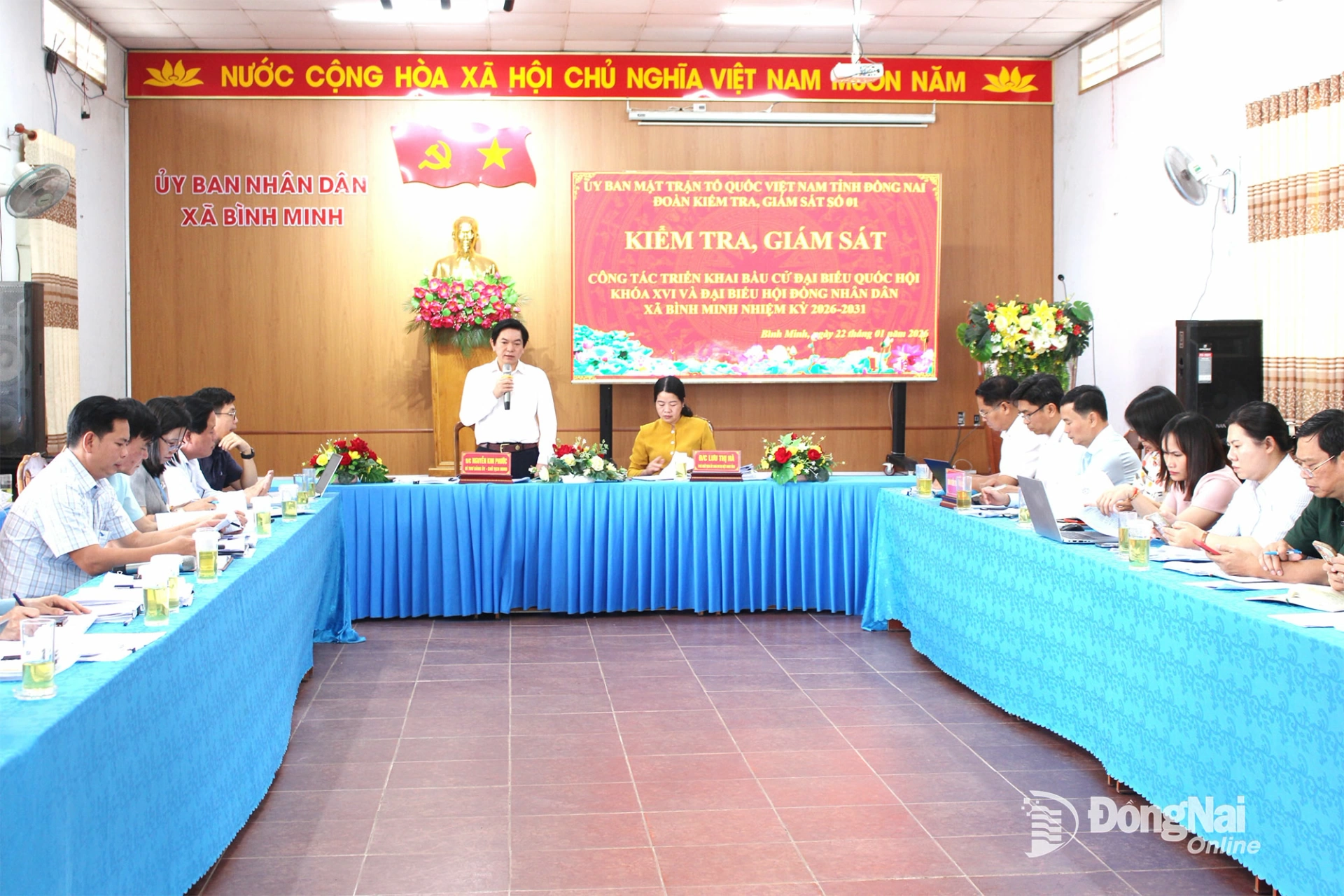 Thành viên đoàn kiểm tra, giám sát phát biểu ý kiến tại buổi làm việc. Ảnh: Hồ Thảo