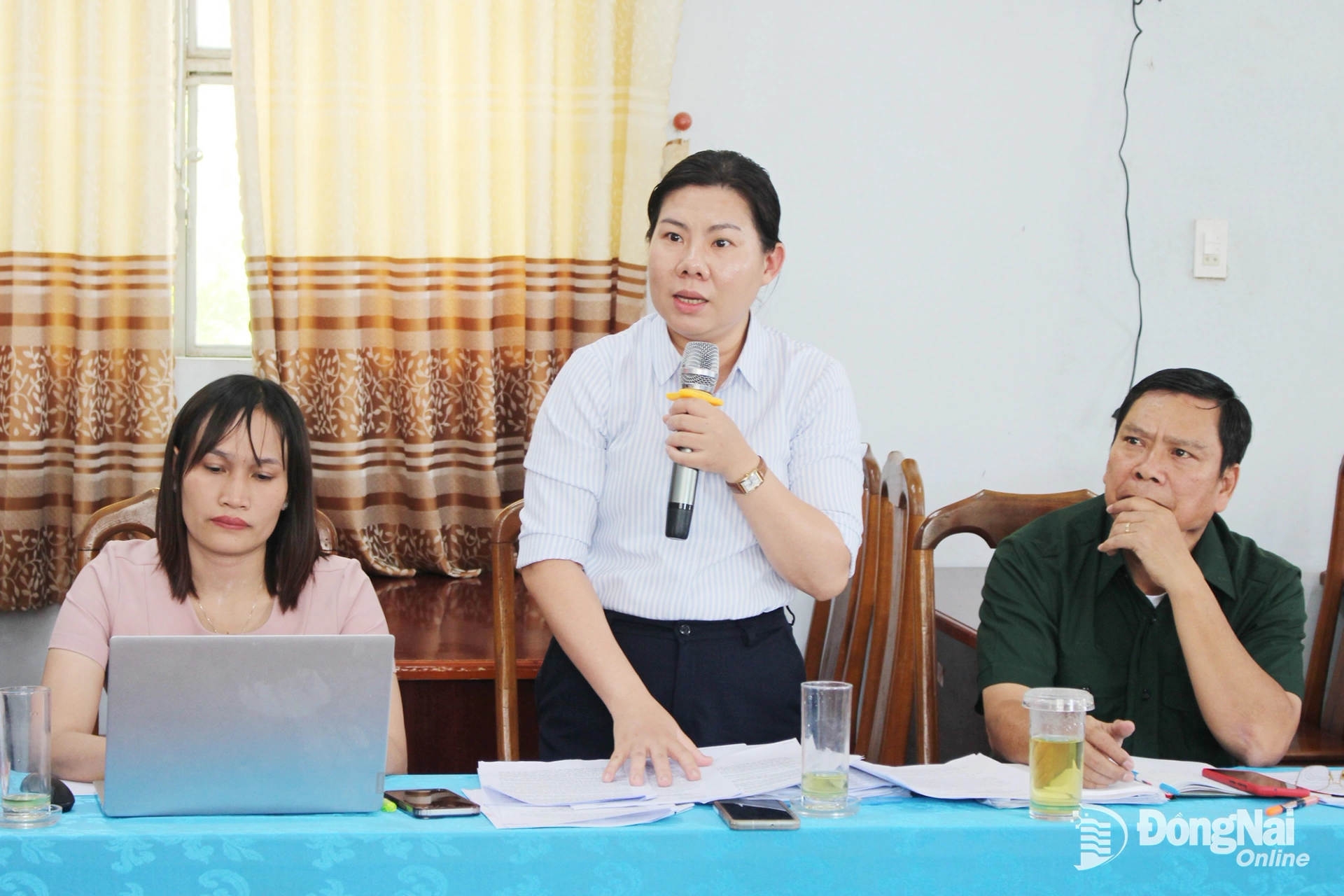 Đồng chí Lưu Thị Hà, Phó Chủ tịch Ủy ban MTTQ Việt Nam tỉnh Đồng Nai phát biểu tại buổi làm việc. Ảnh: Hồ Thảo