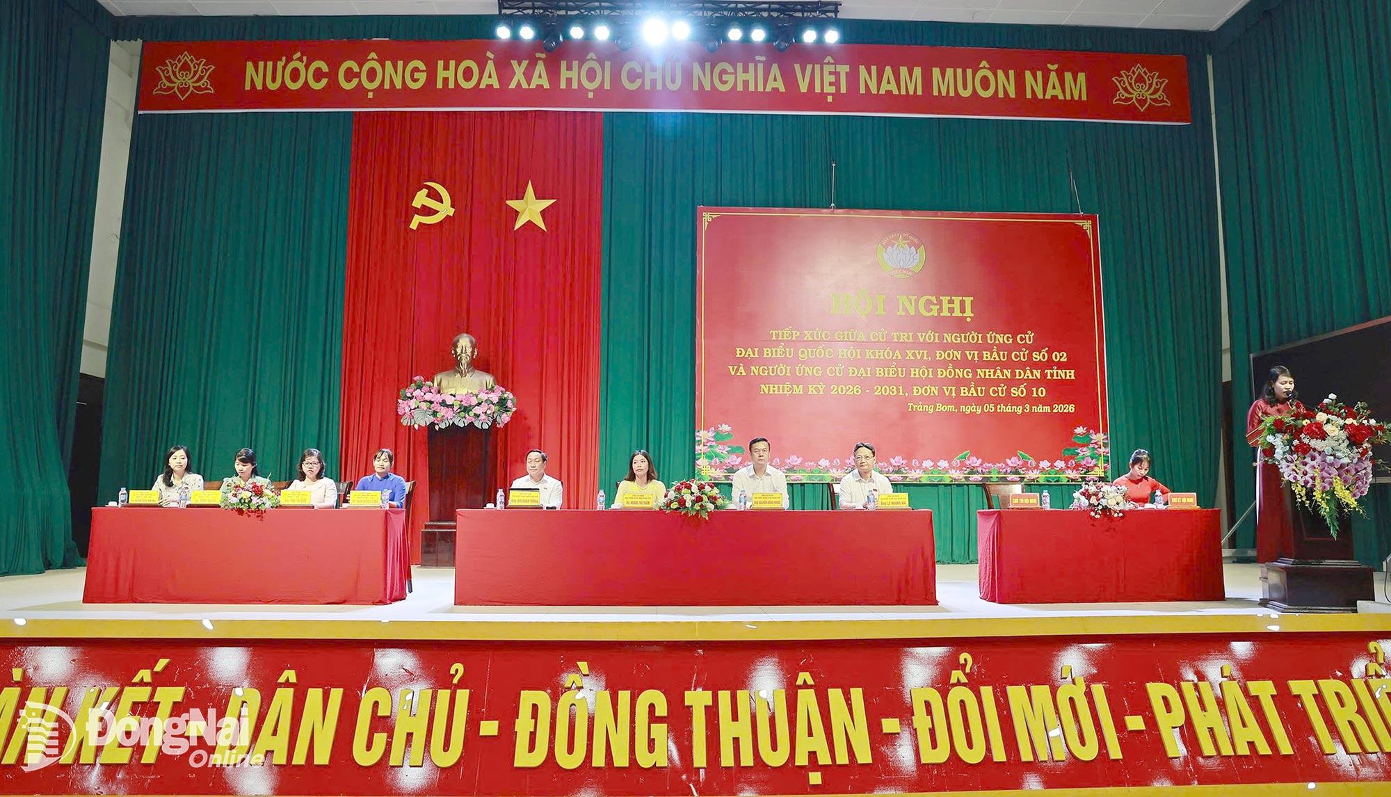Tại hội nghị, các cử tri đã nghe giới thiệu tiểu sử tóm tắt và chương trình hành động của các ứng cử viên ĐBQH khóa XVI, Đơn vị bầu cử số 2 tại tỉnh Đồng Nai và đại biểu HĐND tỉnh nhiệm kỳ 2026-2031, Đơn vị bầu cử số 10.