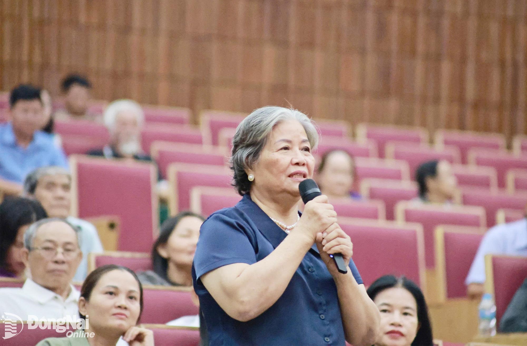 Cử tri phát biểu ý kiến tại hội nghị. Ảnh: Phương Hằng