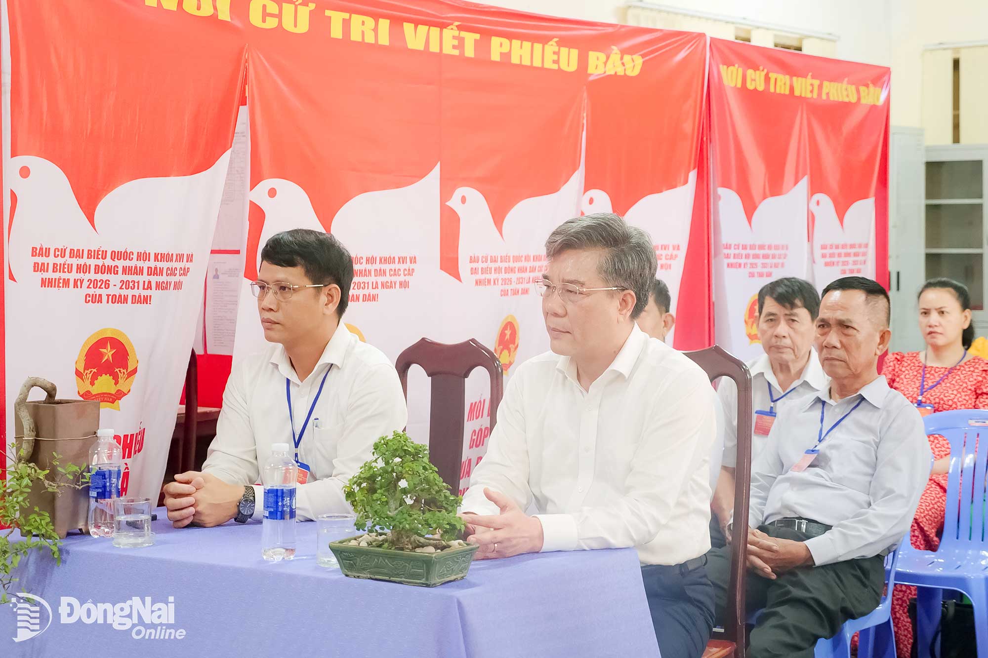 Ủy viên Ban Thường vụ Tỉnh ủy, Trưởng ban Tuyên giáo và Dân vận Tỉnh ủy Đồng Nai Dương Minh Dũng dự lễ khai mạc bầu cử tại khu vực bỏ phiếu số 8, ấp Phước Kiểng, xã Nhơn Trạch. Ảnh: Hạnh Dung