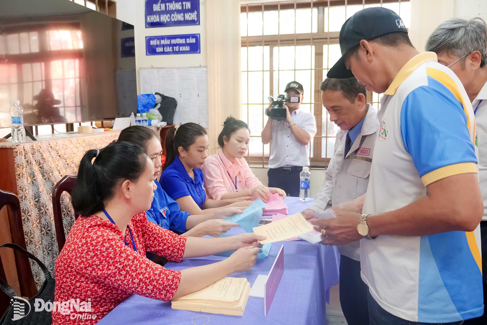 Cử tri nhận phiếu bầu. Ảnh: Hạnh Dung