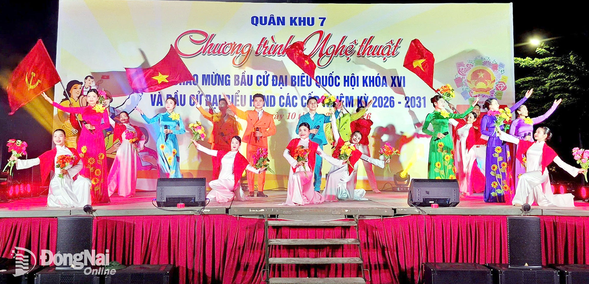 Phát biểu khai mạc chương trình, Tỉnh ủy viên, Bí thư Đảng ủy, Chủ tịch HĐND xã Long Thành Nguyễn Hữu Nguyên bày tỏ cảm ơn Bộ Tư lệnh Quân khu 7, các cơ quan Quân khu và Đoàn Văn công Quân khu 7 thực hiện đêm nghệ thuật ý nghĩa, chào mừng cuộc bầu cử đại biểu Quốc hội khóa XVI và đại biểu HĐND các cấp nhiệm kỳ 2026-2031 tại xã Long Thành. Đồng thời khẳng định: Cuộc bầu cử là sự kiện chính trị quan trọng, là ngày hội của toàn dân - ngày hội non sông để lựa chọn những đại biểu xứng đáng, đại diện cho ý chí, nguyện vọng của nhân dân tại Quốc hội và HĐND các cấp.
