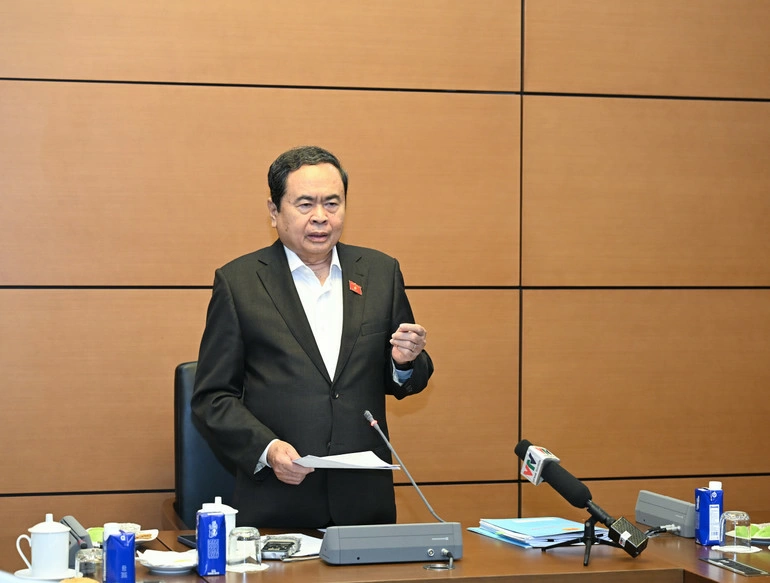 Chủ tịch Quốc hội Trần Thanh Mẫn phát biểu tại cuộc họp. Ảnh: DUY LINH