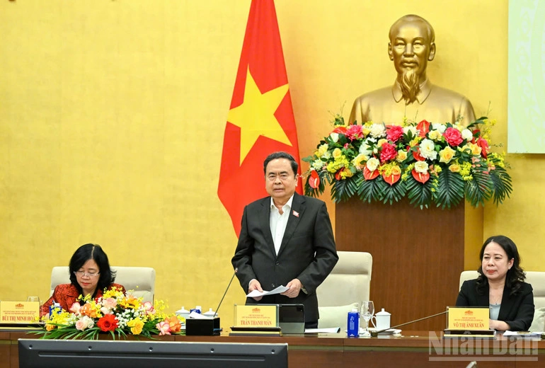 Chủ tịch Quốc hội Trần Thanh Mẫn yêu cầu các cơ quan, địa phương tiếp tục tập trung cao độ, bám sát, thực hiện đầy đủ yêu cầu Chỉ thị 46 ngày 16-5-2025 và các Kết luận của Bộ Chính trị về lãnh đạo cuộc bầu cử. (Ảnh: DUY LINH)